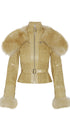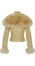 Smocked Leather Jacket with Detachable Collar